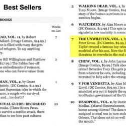 On the right is the current best seller list in graphic novel category.I cannot stress enough! The Unwritten is a very well written, mysterious, intellectual and interesting story. Definitely not your kids’ comic book. And, I am not saying this because I do the covers. It is REALLY good.
